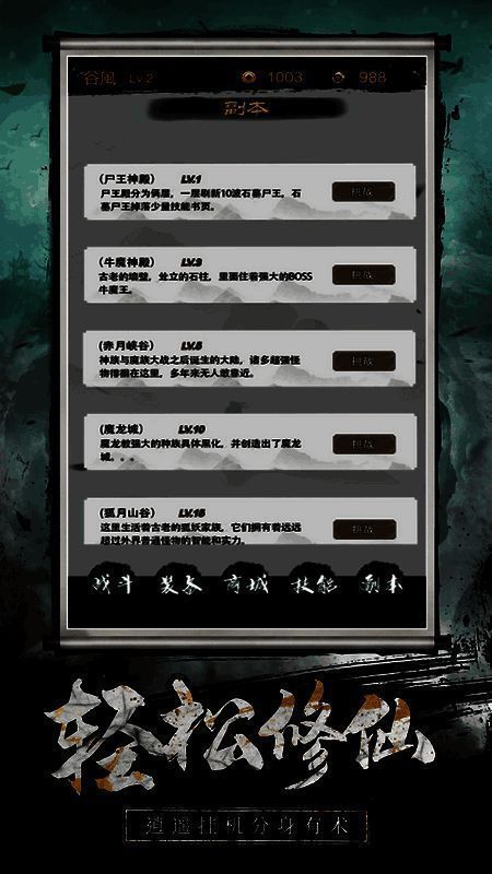 极度休闲,没时间可挂机修炼;能修炼渡劫,组队战斗并实时交流;现有技能、修炼、离线修炼等多种玩法。