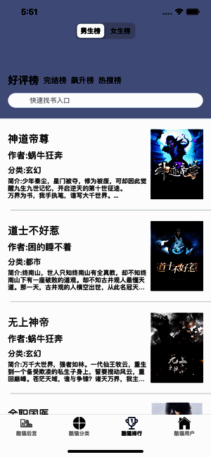 《酷猫看书》是一款在苹果商城收获众多好评的手机小说阅读软件。在这款软件里,用户能阅读到优质小说内容,无需充值,也不用成为 VIP 会员,只要是软件用户,就能享受免费阅读全本小说的优质体验。心动的小伙伴赶紧下载试试吧!
