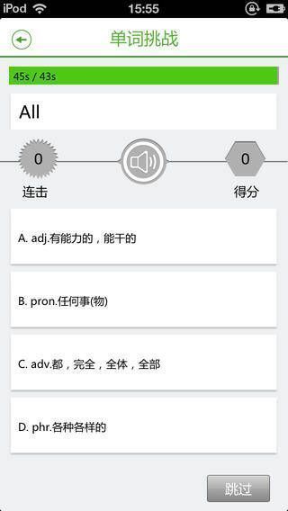 《单词刷刷刷》能让大家充分利用各类闲暇时间学习英语单词,积累一定量的词汇可为整体英语学习筑牢根基。该应用收集了中考、高考、大学四级、大学六级、托福、雅思、SAT、GRE这八个方面的核心单词,还有常用短语,能满足从中学到大学再到出国读研不同阶段的英语词汇需求。