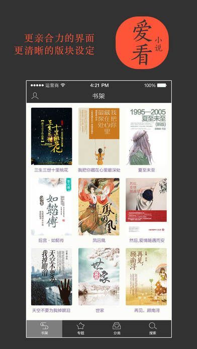 《爱看小说》是一款能让你爱上看小说的书城 APP。它内置海量免费图书,涵盖各种类型,软件的画面与操作设计都非常人性化,让你能无忧看书、爱上看书。它囊括当下热门小说,还能实时更新连载。