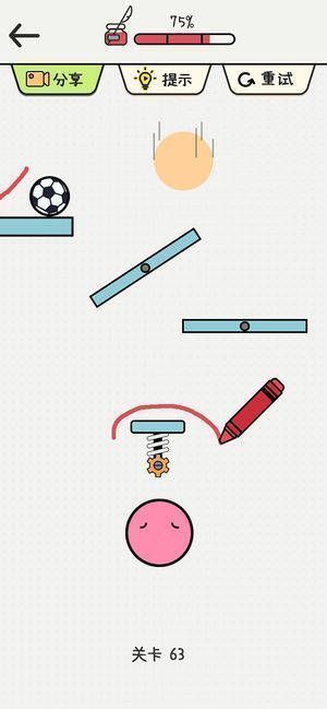 2、采用物理画线玩法进行引导,使小球快速到达指定位置闯关,游戏中还有许多皮肤可供选择。