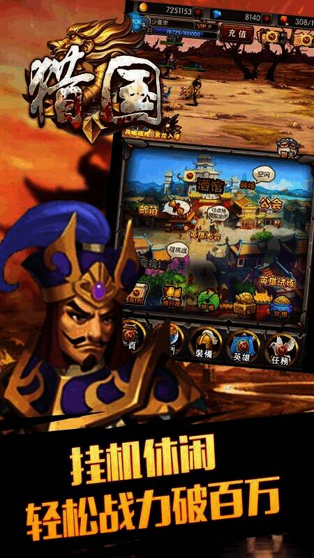 《猎国》为玩家打造一场别具趣味的三国世界争霸对决冒险,能让大家体验轻松的放置三国冒险挑战。玩家只需挂机就能轻松提升实力,不断升级去挑战更高难度的副本。还能在兵营招募强大的稀有武将,自由培养喜欢的英雄角色,感受精彩又休闲的战斗挑战。
