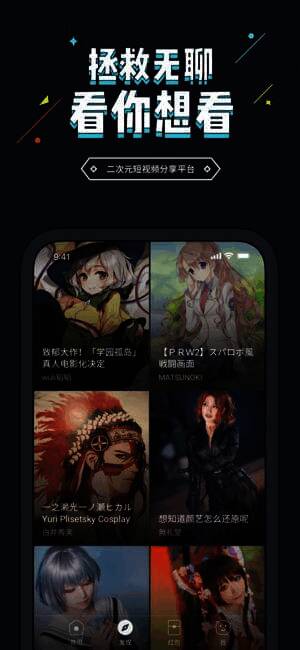 超适配手机观看的二次元短视频,是行业内率先聚焦二次元短视频的应用,无需翻转手机,刷视频更快速、体验更优质;将实时弹幕融入短视频,带来全新观看感受;看视频还能抢红包,边享受边收获意外收益。