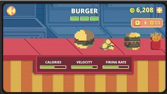 1、以快餐作为弹药;2、具有像素复古风格;3、既有趣味性又有一定启发意义。