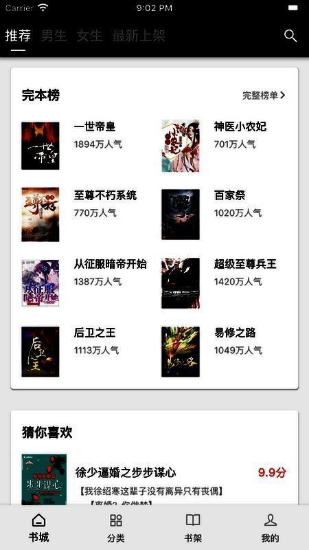 4. 种类繁多,聚合海量优质小说,还有个性推荐,让你专看全网最新热门小说。