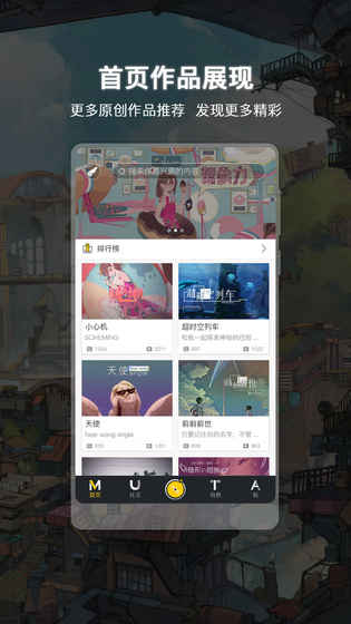 MUTA app 是一款音乐社交客户端应用。在 MUTA 里,你能尽情发挥创意创作曲子,让虚拟偶像嫣汐为你放声歌唱。同时,还能在首页发现众多好听的原创作品,与网友交流探讨音乐心得。