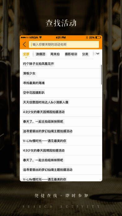 软件特色众多:可报名活动获实践机会,浏览作品获摄影数据,获取景点旅游信息、购门票,与影友结伴创作,还能收藏作品获灵感。v2.2.0 版本优化了注册昵称问题。