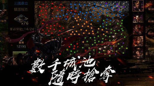 3、实景还原 三国战图:分为魏、蜀、吴三国,真实还原地形版图,有多达300个关隘城池,烽火连天,抢夺城池争做霸主。