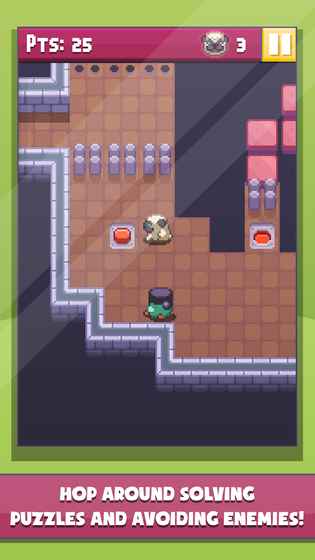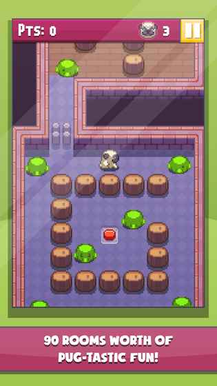 在游戏里,玩家操控帕格于地下城中冒险,像素风格搭配这只萌宠,画面喜感十足。玩家要依据游戏提示,按正确顺序踩地上的按钮解开机关,同时躲避沿途的敌人,像绿色泥团、小蜜蜂等。