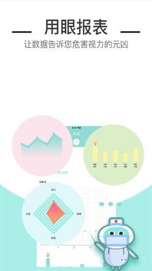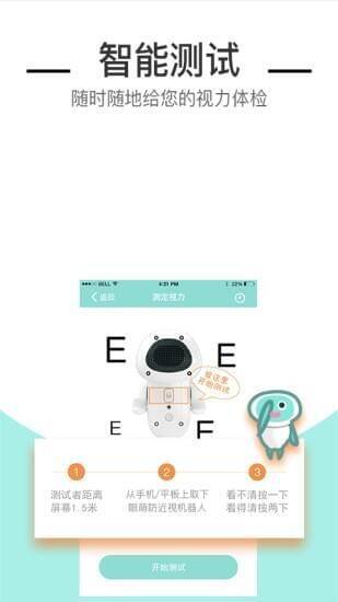 - 视力智能测试:通过测试可清晰了解眼睛视力状况,是否下降一目了然。而且应用程序会记录视力情况,并提供专业的保护建议。