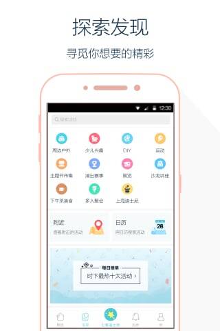 【探索发现】分类详尽,可就近参加活动,还有热门榜单,每一刻都能发现美好的生活。