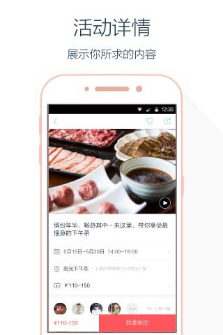 2、详尽分类、就近参加、热门榜单,让你每时每刻都能发现美好的周末生活。