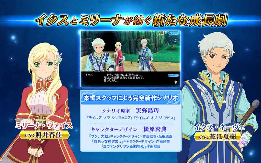 1、《闪光传说》剧情原案由曾负责《Tales of the Abyss 深渊传奇》《Tales of Symphonia 交响曲传奇》等系列作脚本的人气剧作家实弥岛巧担当!