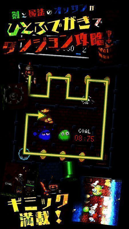 要解决地牢里的敌人,需用手指划出一条从入口到出口的路线。在这条路线上,英雄会遭遇怪物、宝藏、陷阱和障碍,路线决定了会遇到什么以及何时遇到。英雄会沿着路线行动并实时战斗,要运用身上的物品进行治疗、攻击、防御,让英雄存活下来。收集物品,变得更强!助力山田君制作关于他拯救公主的游戏,公主形象类似他隔壁女孩,只是游戏里是金发,邻居是棕发(“原创角色”)。
