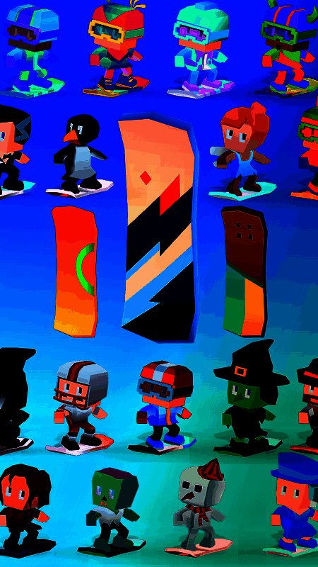 - 有个性化的角色和单板滑雪板供玩家解锁收集。