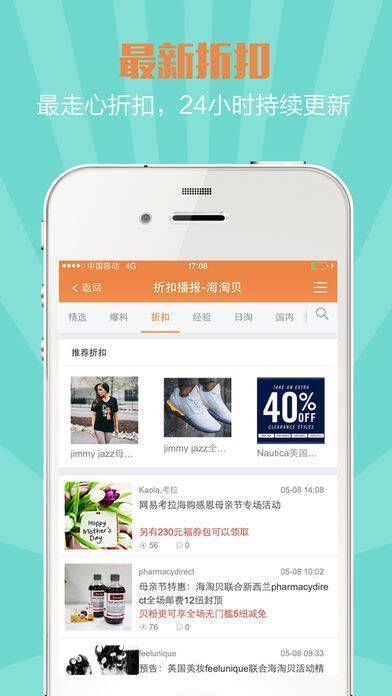 1、精选、爆料、折扣:这里有每日最新鲜、最热门、人气超高的海淘单品以及海外优质网站的折扣,保证让你尽情购物,停不下来。