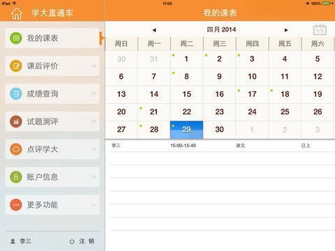 2、课表查询:可查询近期课程安排,并提供历史课程查询记录。