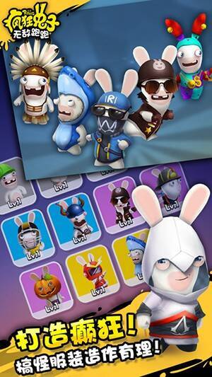 乔装打扮:让疯狂兔子穿上战衣,如机车服、墨西哥摔角手服装等,每种服装都有能力和额外技能。
