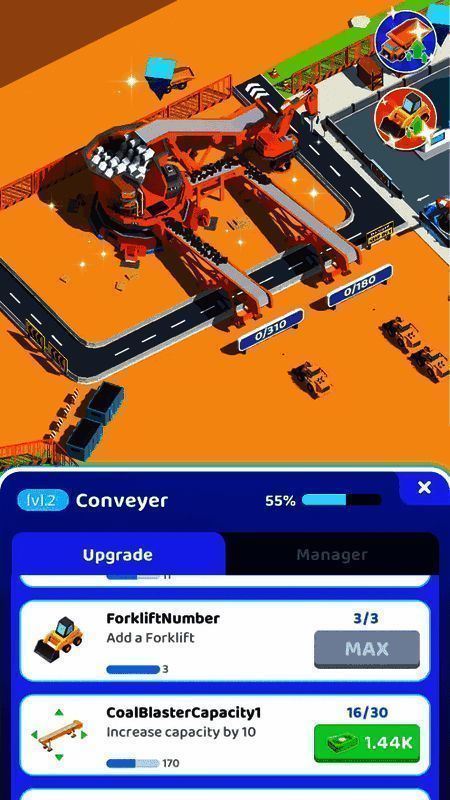 游戏初期创业资金有限,只能开设一个矿场,玩家可在慢慢发展的过程中体会其中乐趣。提升相应功能的等级,能提高效率并随时获取金币。游戏简单有趣,每一关的道具十分丰富,游玩过程刺激又过瘾。开启加速功能后,一切进程都会加快,尤其是施工时间较长的环节。
