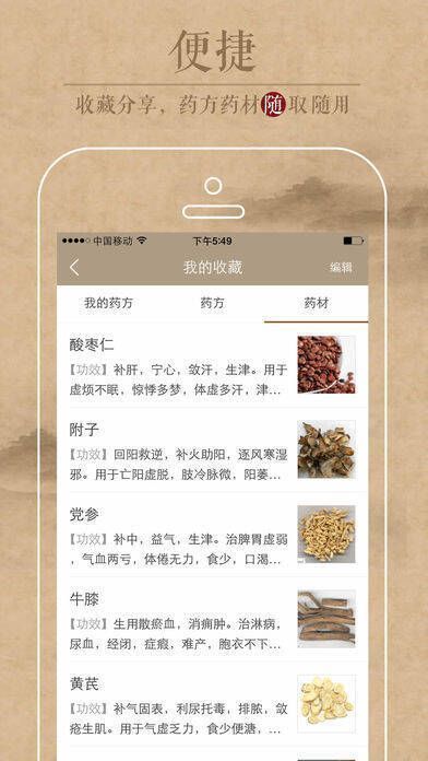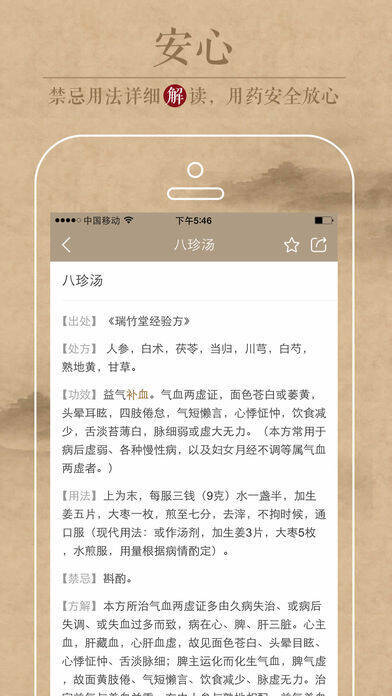 3、【海量典藏】:以传统中医药学为根基,收录25000个经典药方、13000种经典药材,对祛湿治燥、补益安神、理气理血等各类病症均有应对之策。