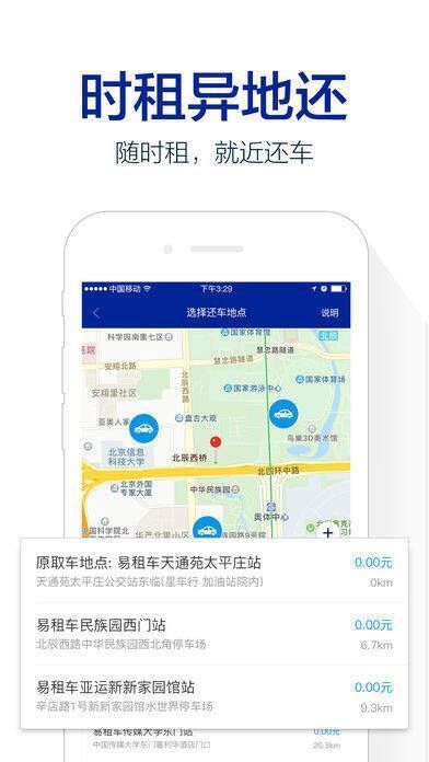 2、用户可利用 LBS 技术定位并预定距离最近的车辆网点,能即时预定,也可提前 15 分钟预定。全程通过手机控制车辆,自助开启自由旅程。到达目的地后,将通利达共享车停在任意合法停车位,再通过 App 完成费用支付即可。