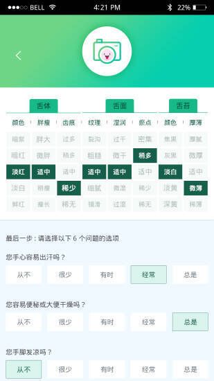 1、舌诊功能新增问卷调查步骤,助力匹配体质,使诊断结果更精准;