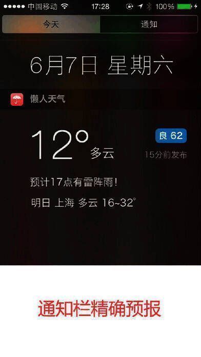 无需每日刻意看天气,《懒人天气》在有雨、温度骤降、强风来袭时提醒你,无提醒则可无忧出行。
