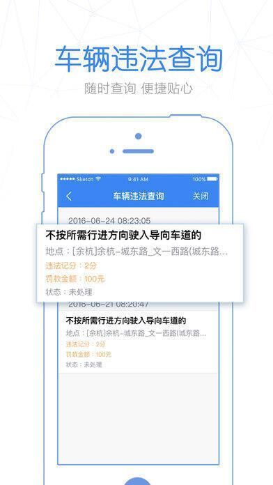 - 违章查询:可查询车辆所有违章记录。