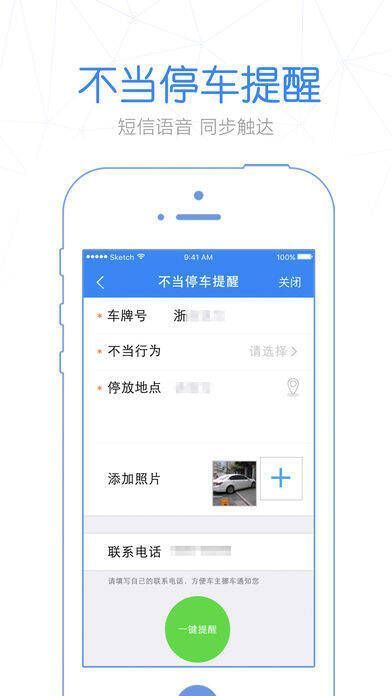 - 不当停车提醒:对于被乱停车挡住的情况,若对方是浙江牌照车辆,用户提供车辆信息、停放位置并拍照,通过 APP 内“不当停车提醒”一键提交,系统会自动发短信提醒车主挪车。