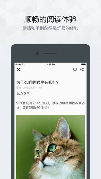 3、每日为您推荐热门果壳文章,让您随时随地获取新鲜、有价值的生活知识和科技资讯。此外,您还能看到果壳编辑精心挑选的来自壹读、VICE、微在等数十家媒体风格各异但调性相近的精彩内容;