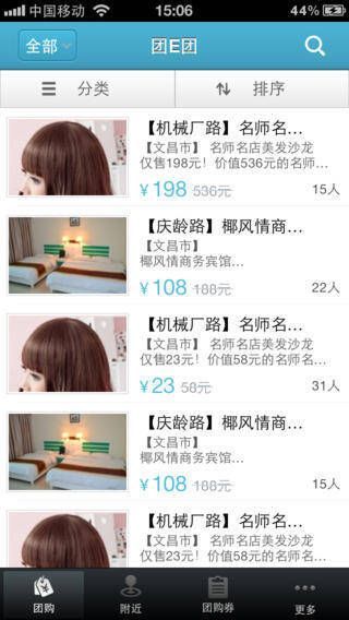 2. 支持按团购内容进行分类筛选。
