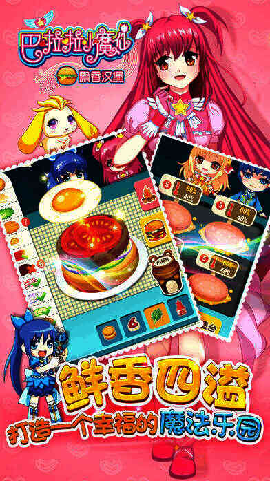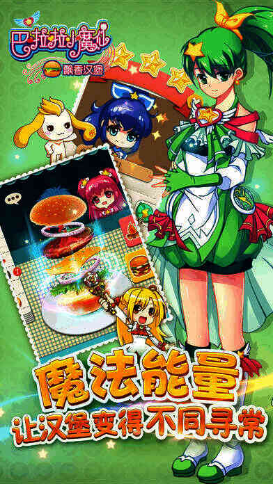 游戏亮点:新鲜蔬菜搭配美味烤肉,营造幸福空间;神奇魔法加上鲜香汉堡,和小魔仙感受美味;还能和好友PK,争当汉堡达人。