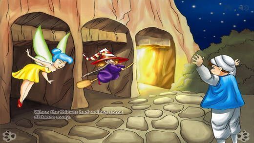 1、页面动态特效:这本有声书籍的每页都有动态效果,像人物的胡子、山洞的石门以及强盗的珠宝等特效,能让读者仿佛身临其境。