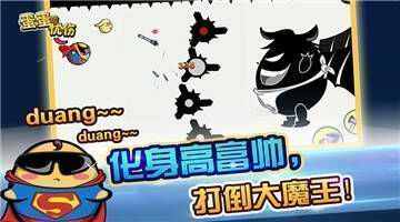 《蛋蛋的忧伤》是一款极具搞怪风格的射击游戏。游戏里,大魔王入侵蛋村,把蛋蛋们都石化了。玩家化身主角屁屁君,为拯救蛋村踏上打败魔王的冒险之路。一路上会遭遇各种奇葩小怪、有趣障碍物,还有特别的BOSS。玩家需运用神秘武器,清除障碍和小怪物,最终打败大魔王。