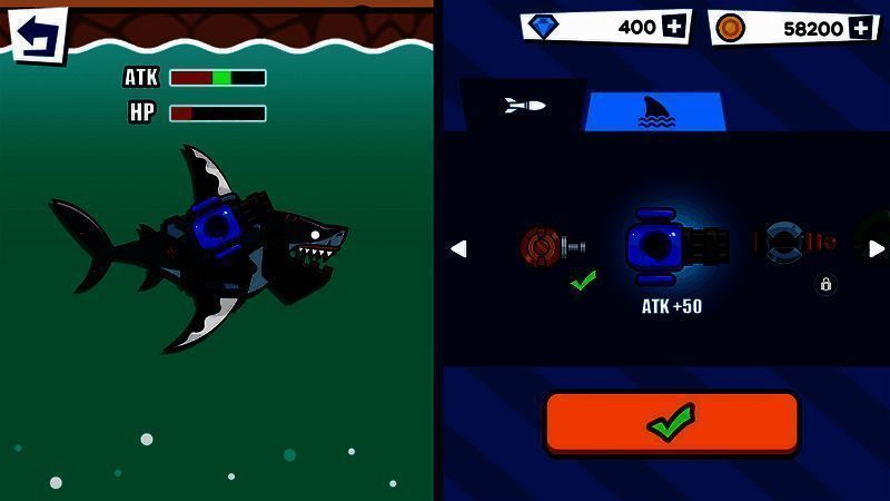 为鲨鱼配备机枪、大炮等,助力技能发展。