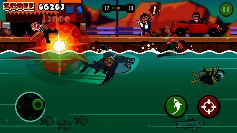 《鲨鱼冲刺》是一款超好玩的深海狩猎游戏。在游戏里,你能操控鲨鱼开启大猎杀,不断吃掉周围的游客,积攒力量去打败周边的部队。游戏提供多种个性化武装,如机枪和大炮,可不断强化鲨鱼的能力。这里还有许多不同种类的鲨鱼供你选择,选好后就能在海里尽情游泳和打猎啦。感兴趣的话,赶紧下载体验!