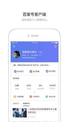百家号手机客户端是百度旗下的自媒体平台,自媒体人可发表文章,凭借阅读量赚取收益。百家号为创作者提供内容发布、变现及粉丝管理服务。原创且精彩的文章能吸引大批粉丝,带来更多流量。此客户端能让作者在手机上查看收入分成和文章流量情况。