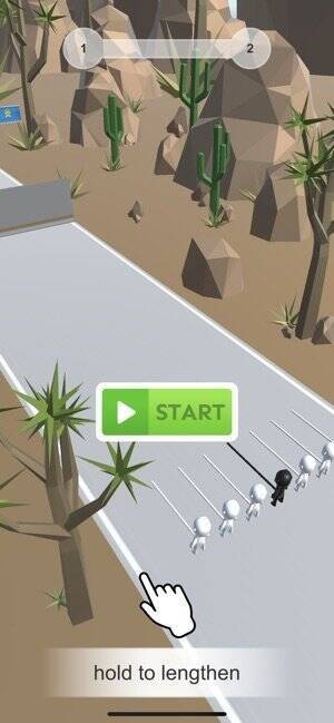 这是一款魔性的大作战游戏,玩家操控角色用杆子撑杆跳,在所有选手到达前顺利抵达指定位置即可获胜。游戏对操作要求较高,跳高前方存在诸多障碍,需避开才能顺利到达目标。