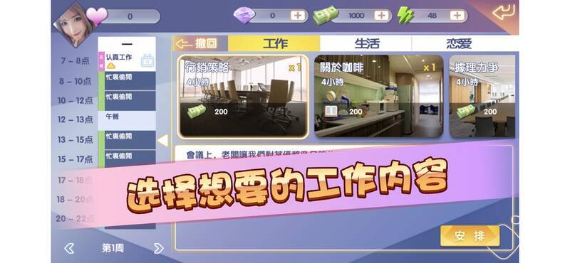 1、玩家可自行安排理想生活,每日行程皆由自己决定。