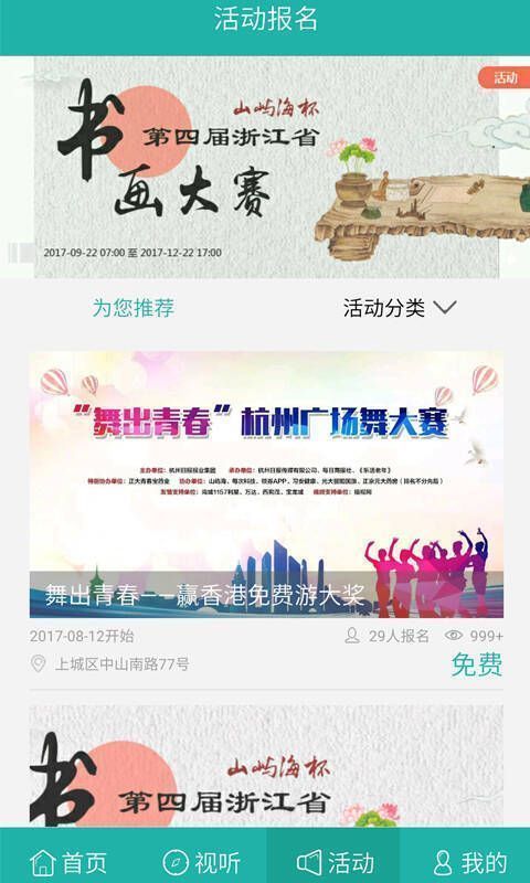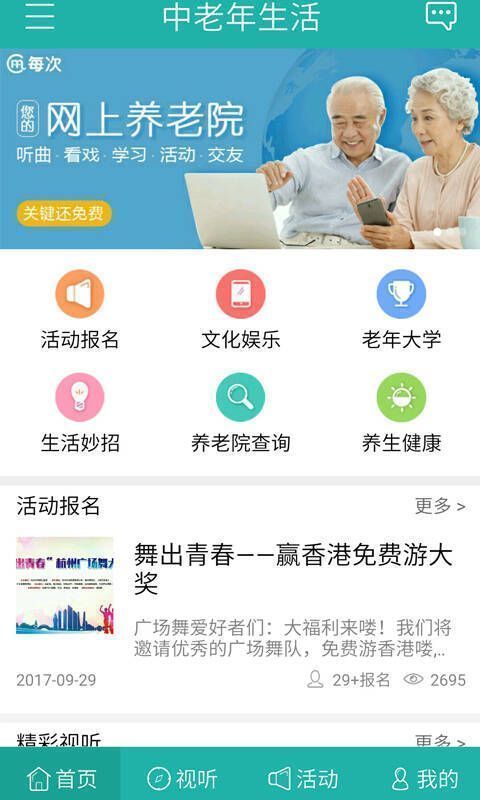 【活动报名】能在线报名全国的中老年活动赛事,如广场舞大赛、书画大赛、公益讲座等。