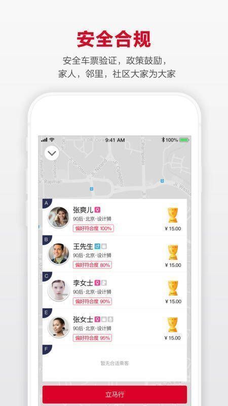 立马行专门针对早高峰出行的各种尴尬状况,如打车难、步行累、雨雪雾霾限行等问题提供解决方案。产品设定了3分钟匹配、5分钟内站点出发的规则,保障车主不绕路、不等待。同时,通过设置NICE值和违规项评价,为车主营造良好的社交环境。使用立马行,不仅能实现安全、绿色、便捷的出行,还能增进社区邻里间的情谊。随着城市车辆增多、停车难等问题加剧,立马行将成为早高峰出行的新选择。