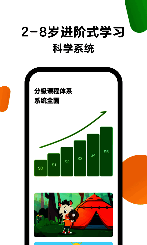 2、依据孩子年龄和学习行为特点细分学习阶段,难度呈螺旋式上升,拥有独家少儿行为大数据。