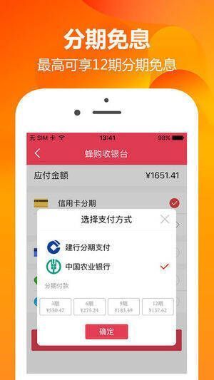蜂购商城 app 是一款优质的电商购物及分期消费平台。商品类型丰富多样,均为正品行货,最高可享 12 期分期免息,让你轻松购物。它还是全国首家借助银行平台推广的、全平台分期的精品 B2C 网上商城。