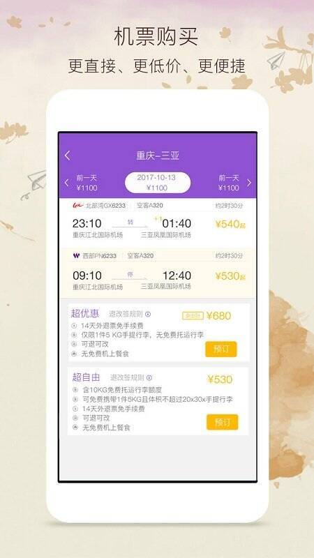 2、新增购买往返程机票功能,您可快速订购往返机票,省时省力省钱;