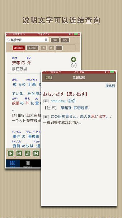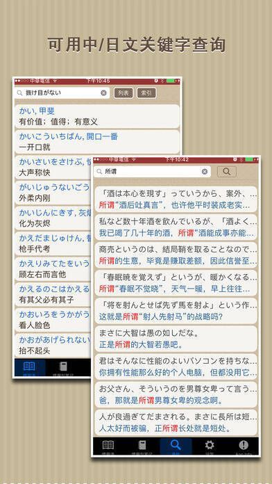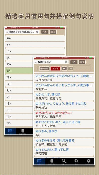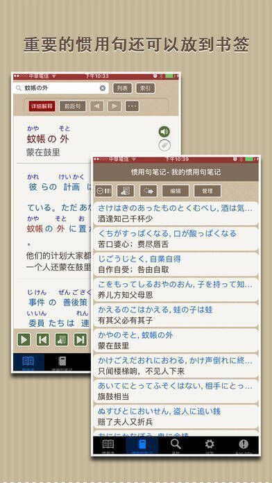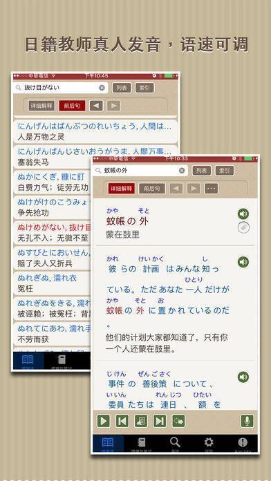1. 所有惯用句词条和例句均为中日对照,还配有纯正口音的真人发音。