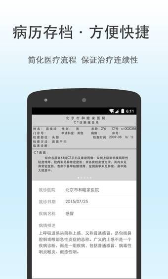 2、病历留存:让您轻松掌握自己的既往病史,降低您的就诊成本,缩短诊断时间;