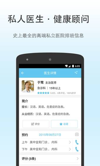 1、医生预约:详尽全面的高端私立医院信息,2400位资深医生(持续增加中)一键预约;