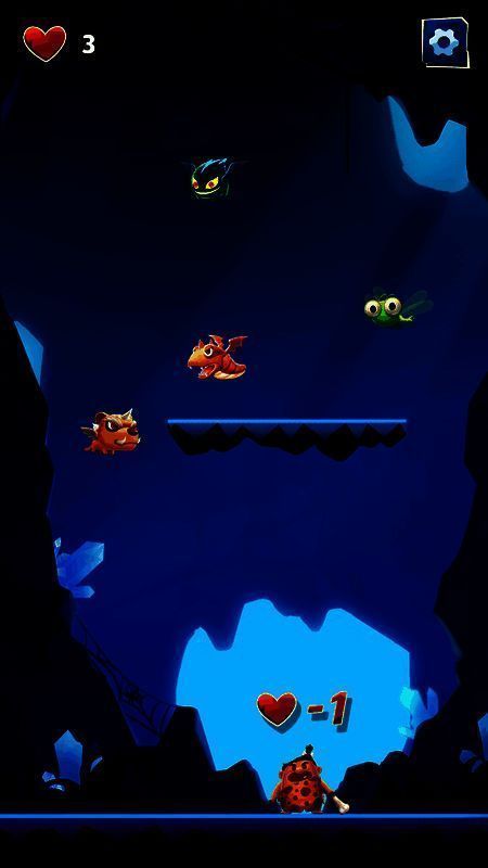 3、玩家可跳跃击杀屏幕中的怪物,同时还要躲避怪物喷出的火焰,被火焰喷中,生命值会减一