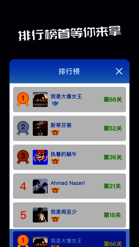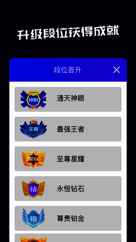 1、升级段位获得成就,解锁荣誉称号,排行榜首等你来拿
