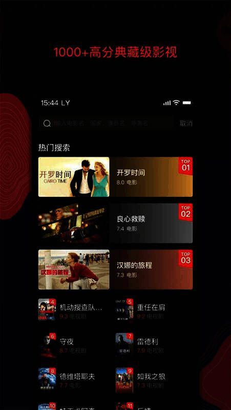 软件内有丰富的电影榜单,如时光网Top100、华语电影Top100、中国、北美、香港、日韩票房榜等,还有各种特色电影。涵盖全球160多个国家的电影、电视剧、电影明星详细数据库,方便粉丝实时搜索查询。